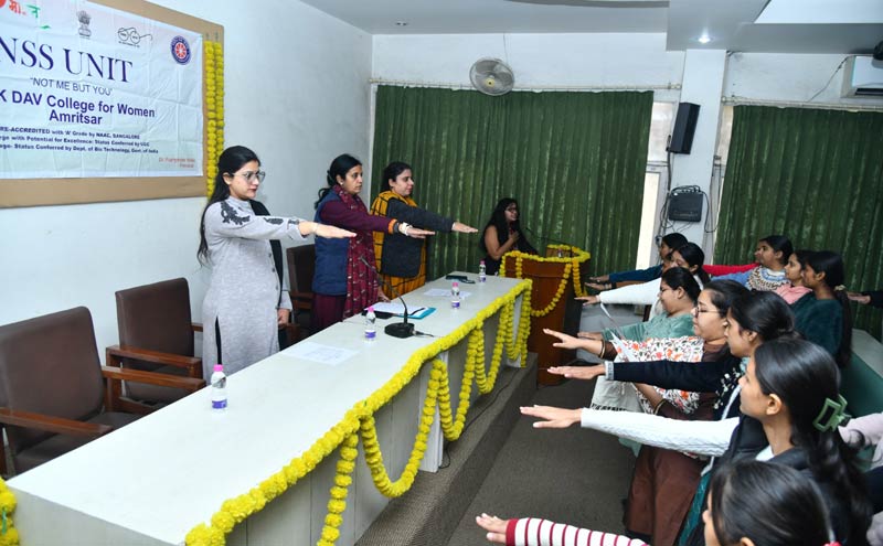 BBK DAV College for Women, Amritsar, celebrated Constitution Day on 26th November 2025 with a series of events highlighting the significance of the Indian Constitution. Ms. Surbhi Sethi, NSS Programme Officer, in her welcome address, emphasized the Constitution’s vital role in guiding the nation’s progress. The event also commemorated the 150th Birth Anniversaries of Sardar Vallabhbhai Patel and Bhagwan Birsa Munda, as well as the 150th anniversary of Vande Mataram.