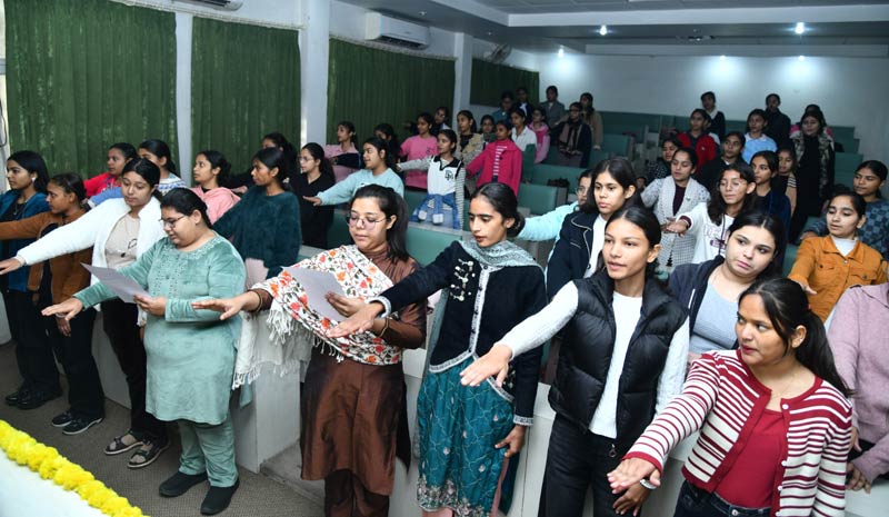 Principal Dr. Pushpinder Walia led the faculty and students in solemnly affirming their commitment to uphold the core values enshrined in the Constitution. In her address, she highlighted the significance of the Preamble and urged the students and staff to conscientiously discharge their duties as responsible citizens, thereby advancing the nation’s progress and empowerment.