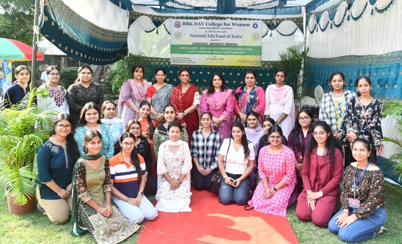 BBK DAV College for Women, Amritsar, organised a Zero Plastic, Skill and Entrepreneurship Fest in collaboration with National EduTrust of India registered under Ministry of Micro, Small and Medium Enterprises, Government of India, to encourage students with entrepreneurial skills. The event was dedicated to Mahatma Anand Swami ji, a strong pillar of Arya Samaj and the DAV movement in the nation.